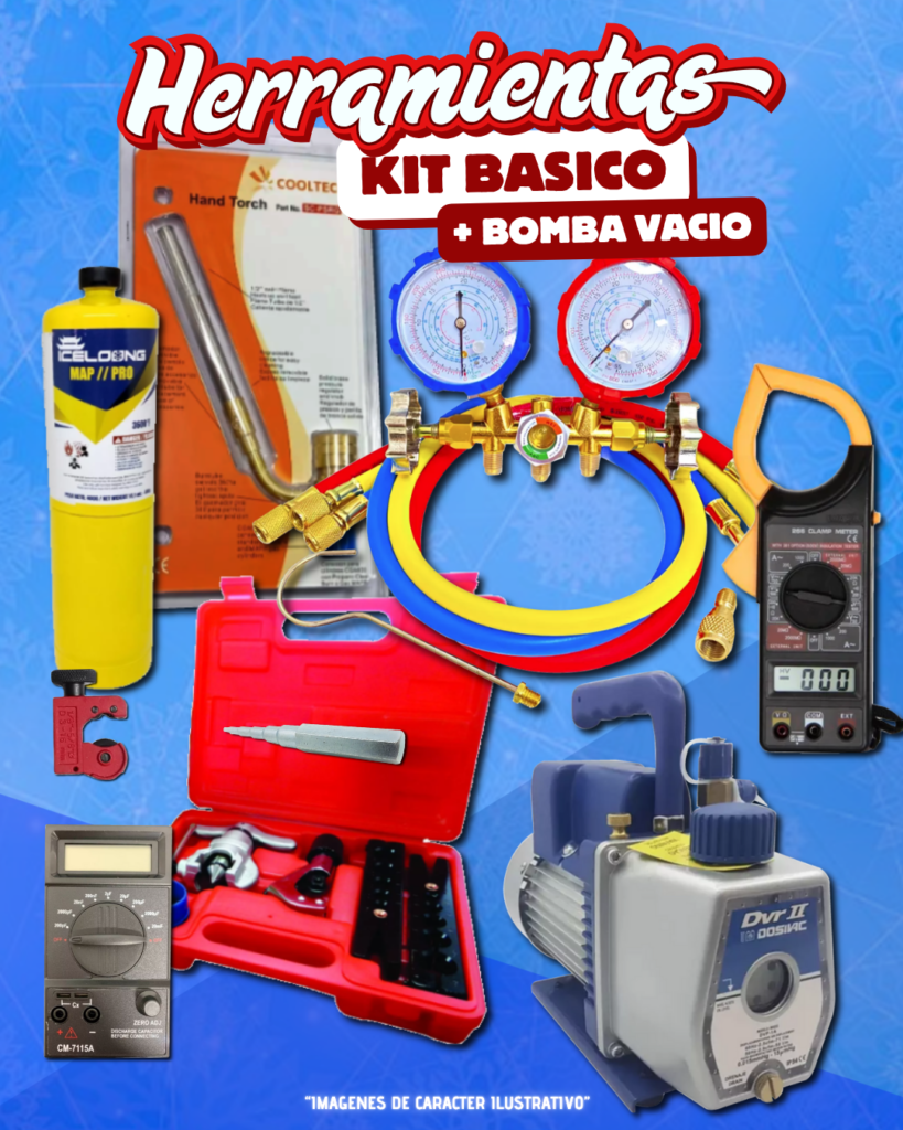 KIT BASICO DE HERRAMIENTAS + BOMBA VACIO 60 L/MIN